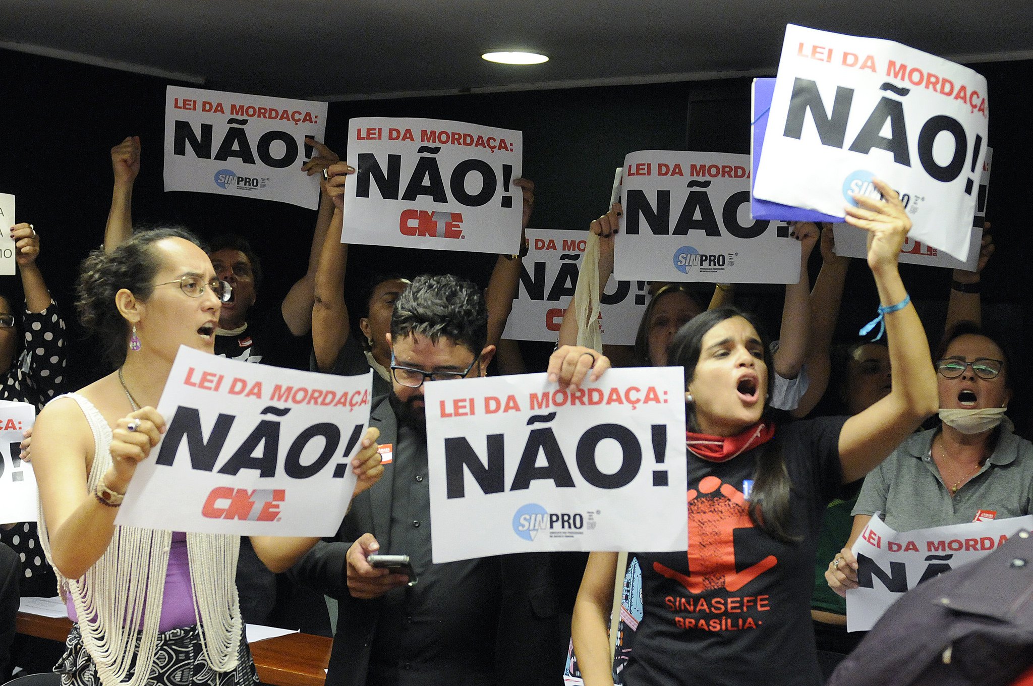 Representantes de sindicatos ligados à educação lotaram o plenário da comissão para protestar contra a matéria. Estavam presentes o ANDES-SN, a Fasubra e o Sinasefe, além da União Nacional dos Estudantes (UNE), da União Brasileira de Estudantes Secundaristas (Ubes) e do Movimento Educação Democrática. Muitas pessoas ficaram de fora da sala, devido à lotação do plenário.
