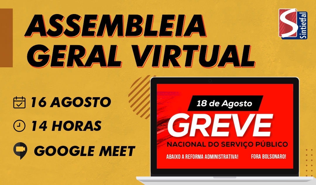 A Assembleia Geral foi convocada pelo Sintietfal e será realizada de forma virtual pelo Google Meet. Para participar, é preciso acessar o formulário de inscrição aqui.